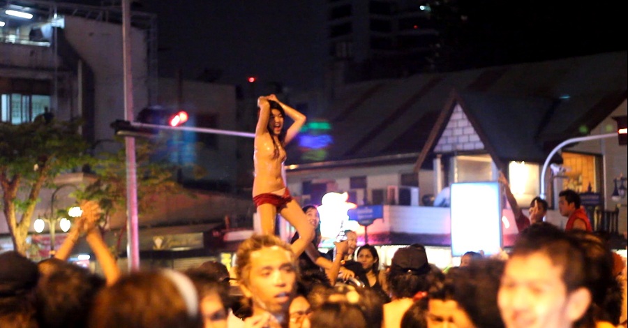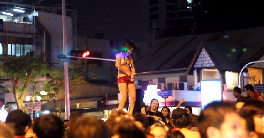 สาววัยรุ่นเต้นโชว์ที่สีลม คงจะเห็นรูปภาพจากกระทรวงวัฒนธรรมเป็นตัวอย่างเลยเรียนแบบบ้าง อิอิ