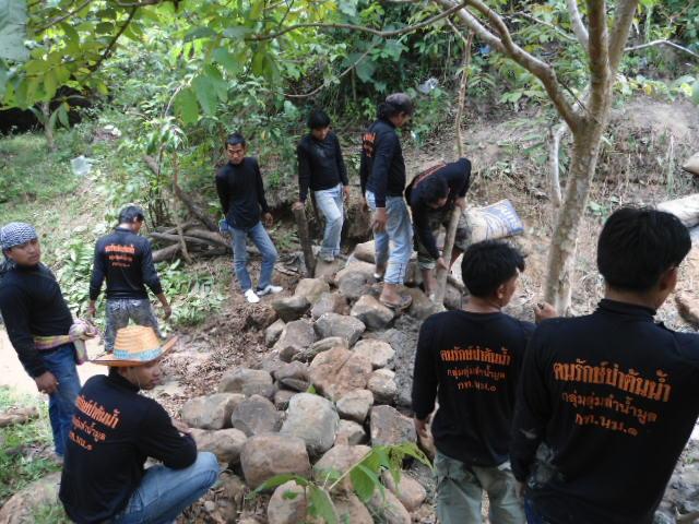 ได้มีการจัดแบ่งกำลังคน กลุ่มฅนรักษ์ป่า สร้างฝายชลอน้ำแบบกึ่งถาวร