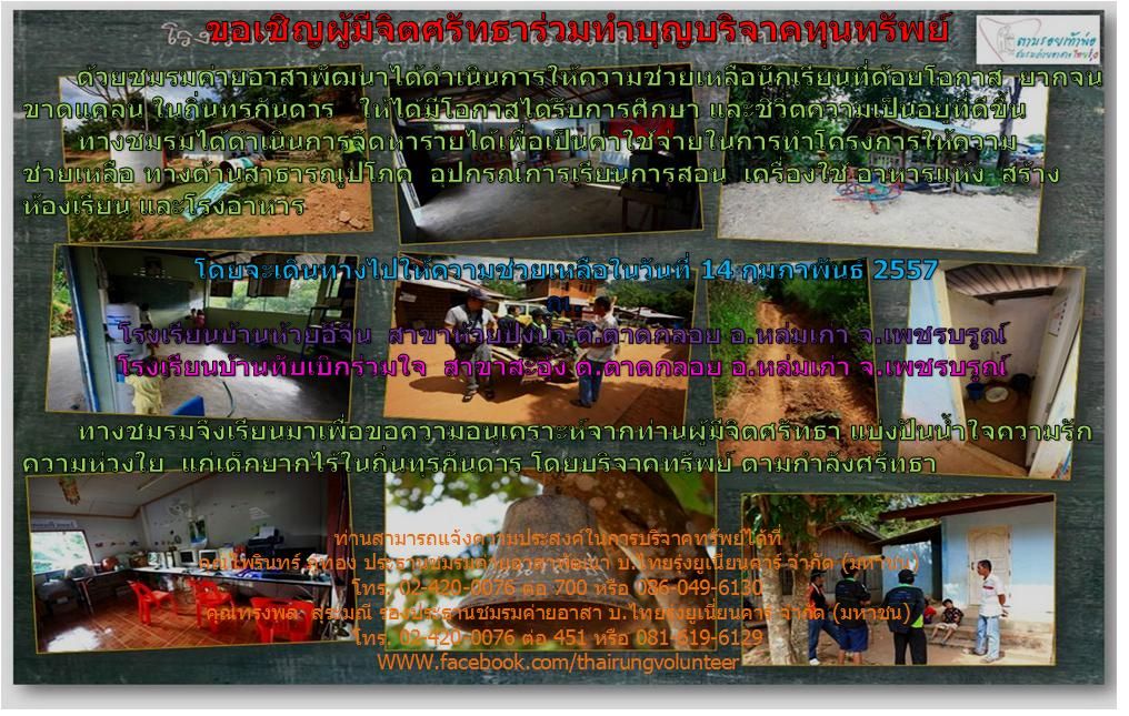 ทางชมรมจึงเรียนมาเพื่อขอความอนุเคราะห์จากท่านผู้มีจิตศรัทธา แบ่งปันน้ำใจความรักความห่วงใย แก่เด็กยากไร้ในถิ่นทุรกันดาร โดยบริจาคทรัพย์ ตามกำลังศรัทธา