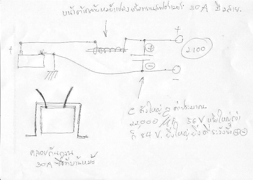ข้อควรระวังคือ คอนเดนเซอร์มีขั้ว บวก ลบ ต่อให้ถุกต้องตามวงจรมิเช่นนั้นระเบิดได้ครับ