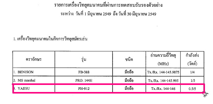 วิทยุรุ่นใหม่ที่ผ่าน type จาก กทช.ฉบับ 7/2549 ไอค่อม IC-2200-T ผ่านแล้ว