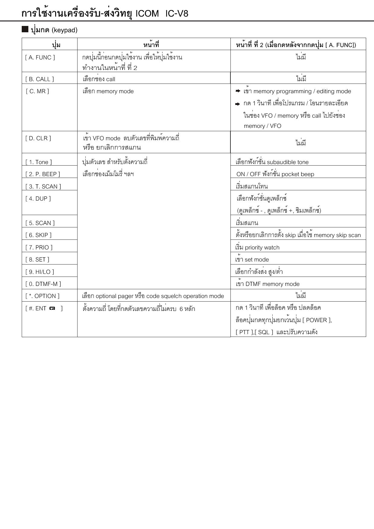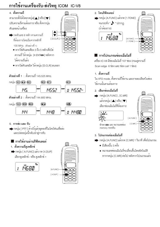 ขอคู่มือการใช้วิทยุสื่อสาร ภาษาไทย (เครื่องดำ) ICOM IC - v8 - T