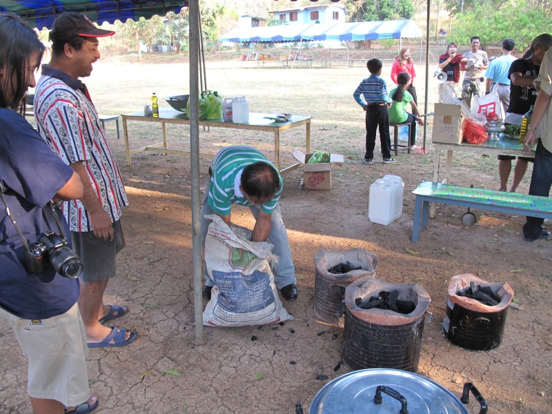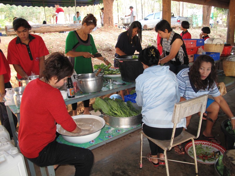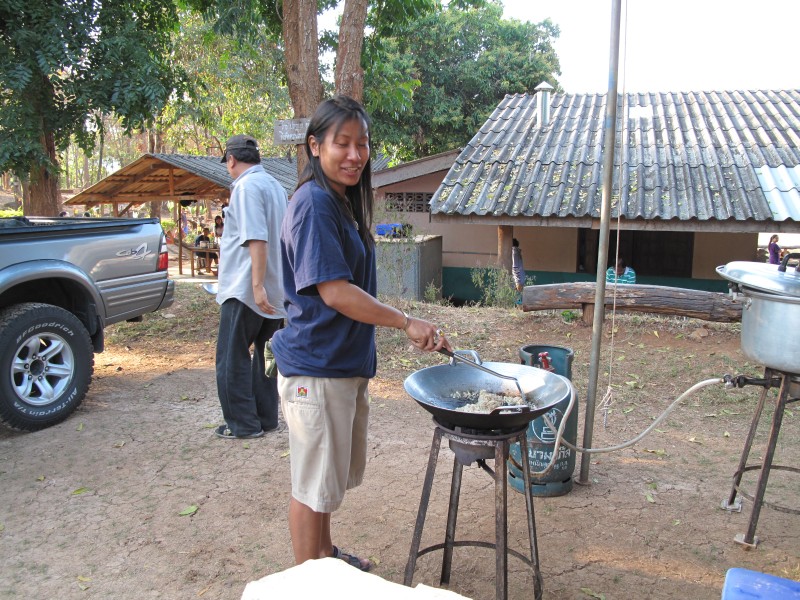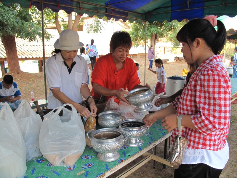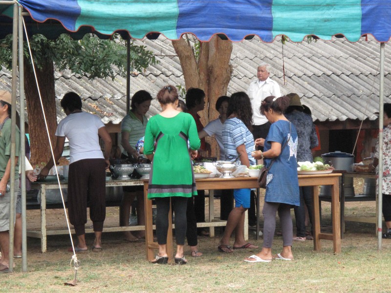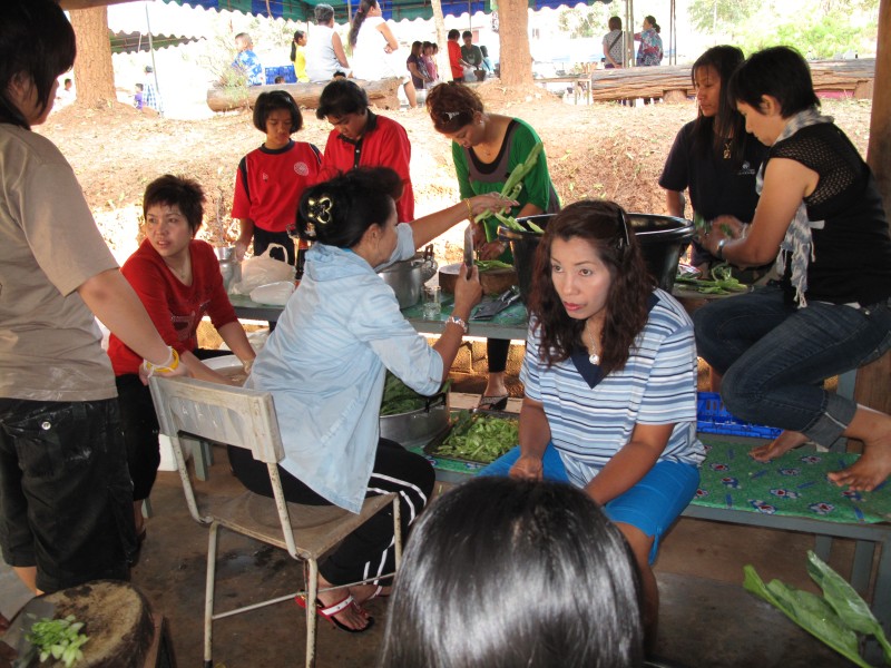 กลุ่มแม่บ้านทรายทองกำลังเตรียมอาหารเลี้ยงเด็ก