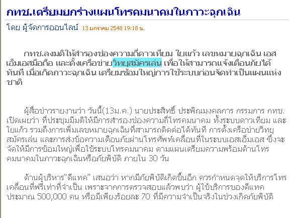 กทช.เตรียมยกร่างแผนโทรคมนาคมในภาวะฉุกเฉิน ตั้งเครือข่ายวิทยุสมัครเล่น