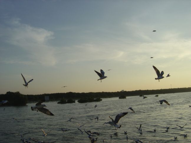ตอนนี้ก็ย้างเข้าหน้าหนาว นกนางนวลก็บินมาจากแถบไซบีเรีย มาที่สถานตากอาอาศบางปูสมุทรปปราการ นับ 10,000 ตัว