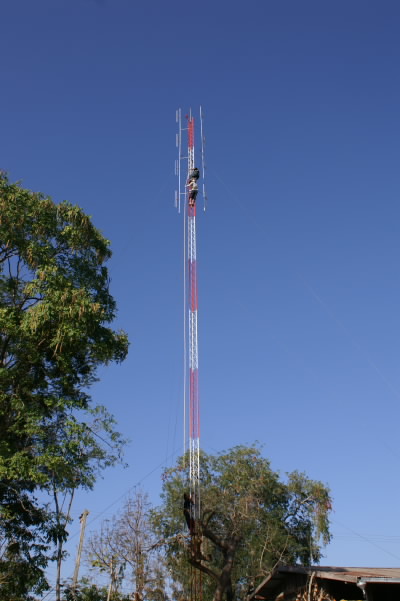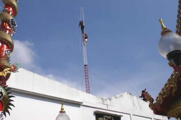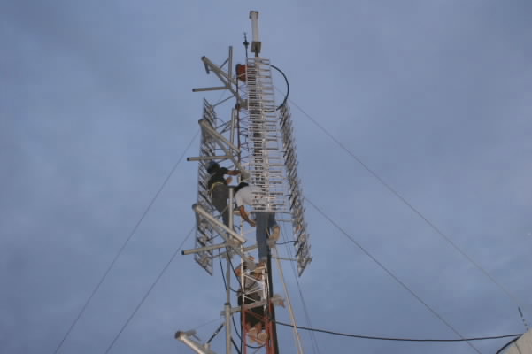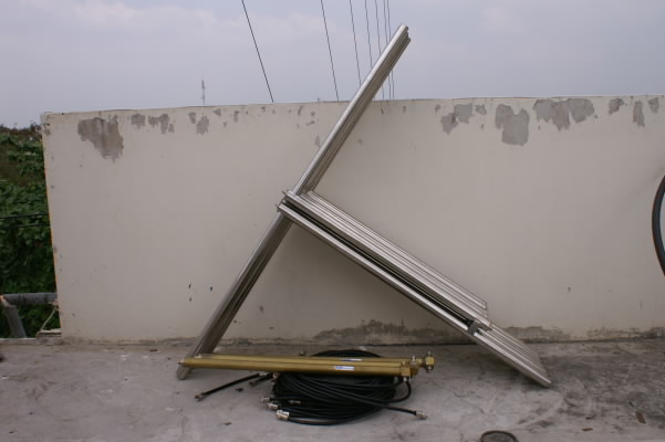 ในรูปที่ 3 ต้นซ้ายสุดและต้นกลางเป็นสายอากาศย่าน CB245 โคนใสโชว์คอยล์เงิน ใช้ C ค่าต่างๆ กันไปแล้วแต่รุ่นและแบบของสายอากาศ ใช้ C ขนาด 1000V หมดทุกต้น ต้นขวาสุดคือ สายอากาศ CL2E ย่านสมัครเล่น และเป็นตันที่ใช้ C 4PF 1000V 2ตัว ในการทดสอบดูจากในรูปที่ 4