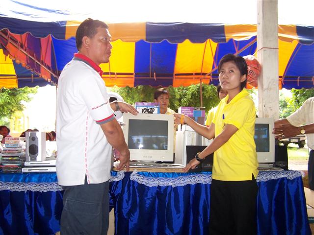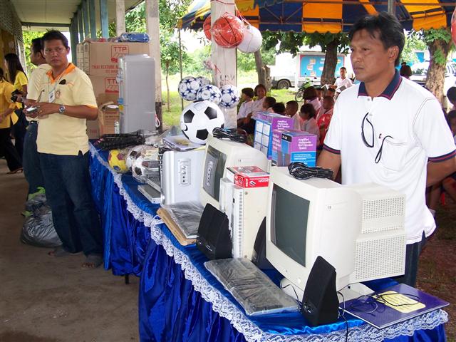 สิ่งของที่นำมามอบให้น้องๆ โรงเรียนบ้านนาโสม มีทั้ง คอมพิวเตอร์ / และอุปกรณ์กีฬา