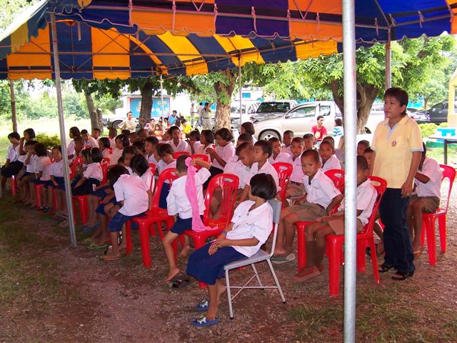 อ้า! อ้า! กระผ้มก็ดีใจที่ชมรม นวลนาง เอ้ย นางนวล มีเมตตานำสิ่งของเสื้อผ้ามาแจกเด็กนักเรียน ฯลฯ......