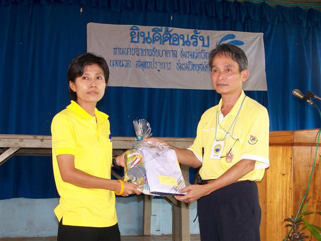 ปลัดอำเภอคนหล่อ เอ้ยไม่ไช่ ขอแก้ไข คนสวยต่างหาก ได้เป็นตัวแทนนายอำเภอซึ่งมีธุระมากไม่สามารถมาร่วมงาน รับมอบเสื้อผ้าสิ่งของ จากประธานชมรมนักวิทยุสมัครเล่นนางนวลสมุทรปราการ E21-AJA