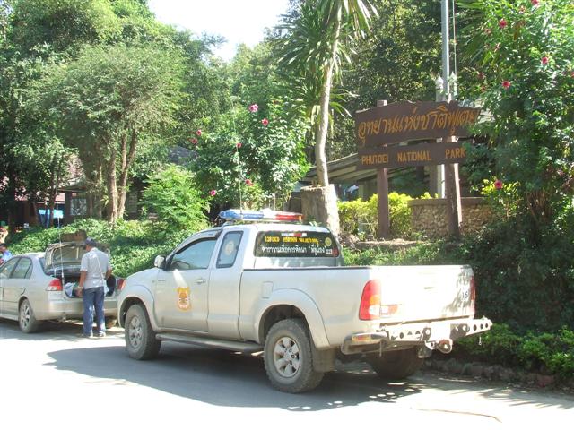 ลงมาถึงที่ทำการอุทยานแห่งชาติพุเตย สำรวจความเสียหายสรุปว่าว๊โก้เสาอากาศวิทยุสื่อสารข้างขวาหักหล่นในป่าเสียแล้ว