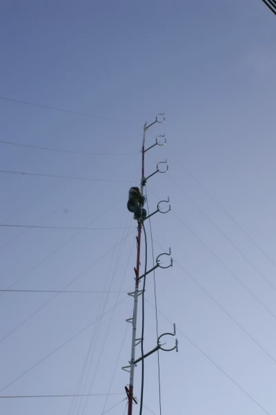 ในรูปที่ 3 ต้นซ้ายสุดและต้นกลางเป็นสายอากาศย่าน CB245 โคนใสโชว์คอยล์เงิน ใช้ C ค่าต่างๆ กันไปแล้วแต่รุ่นและแบบของสายอากาศ ใช้ C ขนาด 1000V หมดทุกต้น ต้นขวาสุดคือ สายอากาศ CL2E ย่านสมัครเล่น และเป็นตันที่ใช้ C 4PF 1000V 2ตัว ในการทดสอบดูจากในรูปที่ 4