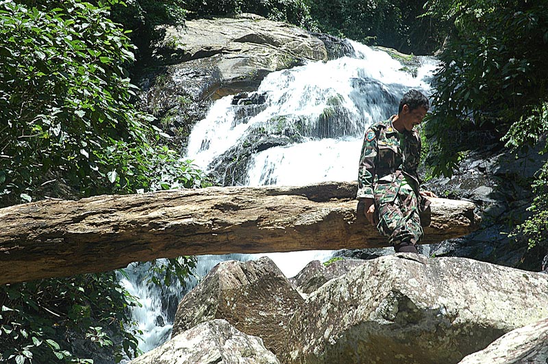 ที่หน่วยป่าละอู 9 โมงเช้าบุญช่วย เจ้าหน้าที่ นำทางให้ เร่งฝีเท้าไปโลด นี่ถ้าหน้าแล้งชั้นที่ 15 ไปกลับยังได้เลย แต่หน้าฝนไม่รับประกันว่าถึง แกบอกเสียงเบาๆ