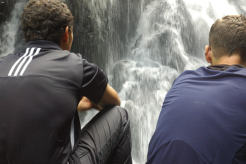 2 หนุ่มเยอรมัน นั่งเหม่อลอย ท่ามกลางเสียงซ่าของน้ำตก ในใจ น่าคิดว่า กูไม่น่ามาเสียงตายเลย5555