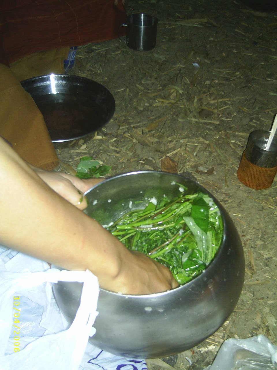 6.) ถือการฉันในบาตรเป็นวัตร คือจะนำอาหารทุกชนิดที่จะบริโภคในมื้อนั้น มารวมกันในบาตร แล้วจึงฉันอาหารนั้น เพื่อไม่ให้ติดในรสชาดของอาหาร