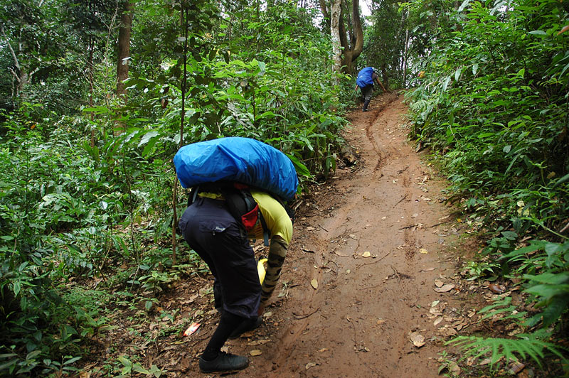 แบกเป้แล้วเดินตามทางไป ทางชัดเจน ไม่ชันมาก