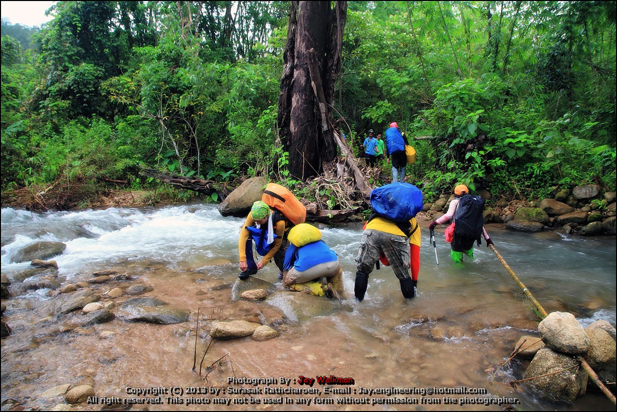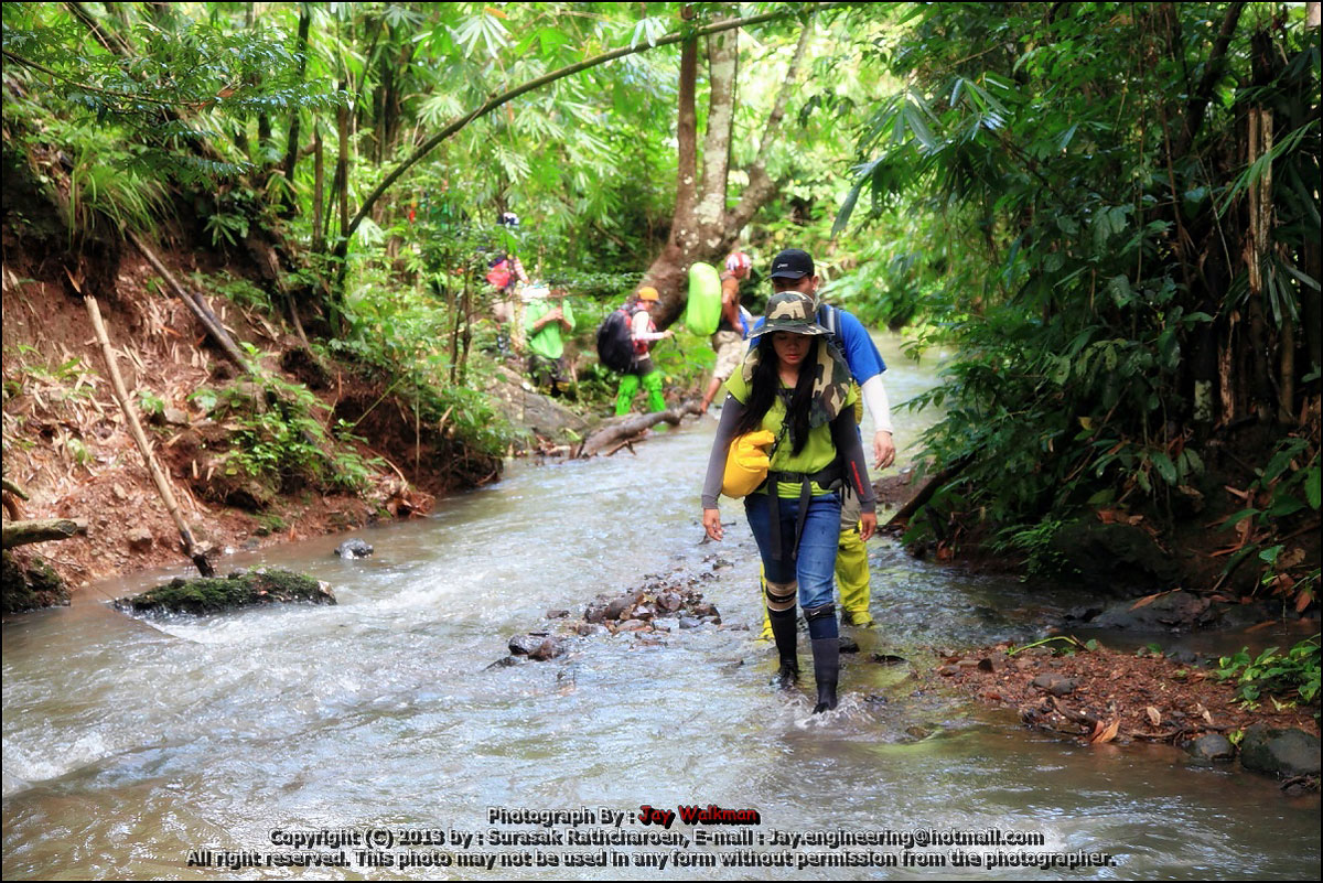 ช่วงที่ไปพื้นดินเป็นโคลน เดินค่อนข้างลำบาก พอเจอแหล่งน้ำก็หยุดแวะทำความสะอาดพวกโคลนที่ติดตามกางเกง รองเท้า ก่อนเริ่มเดินกันต่อ