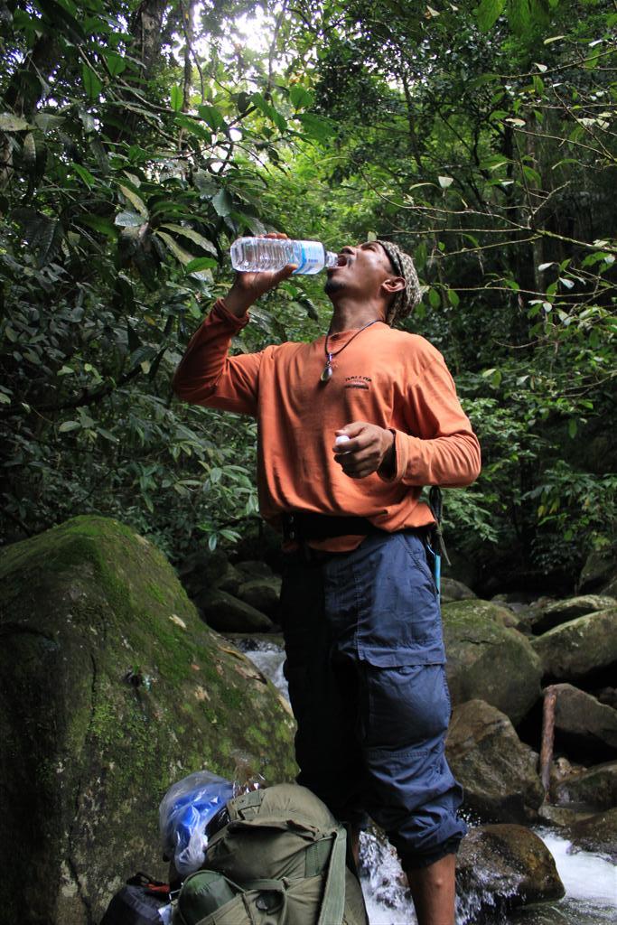 ที่นี่น้ำสมบูรณ์ครับ เราเติมได้ตลอดทาง ขวดน้ำดื่มเล็ก ๆติดตัว ไม่เหมือนทางเหนือบางสถานที่ อย่างดอยเชียงดาว น้ำถัง 20ลิตร 400บาทเลย เขาช้างเผือก ก็ต้องขนขึ้นไป ไห้ลูกหาบลงมาเอาที่ร่องน้ำก็ 5 ลิตร 100 เลย ล่ะครับ ที่นี่สมบูรณ์เรื่องน้ำสมกับคำป่าชุ่มชื้น หรือป่าดิบชื้นจริง ๆถามน้องทัช บอกน้ำไม่มีเชื้อชาวบ้าน ในสวนบนเขาริมป่าก็กินน้ำห้วยกันทั้งนั้นล่ะครับ