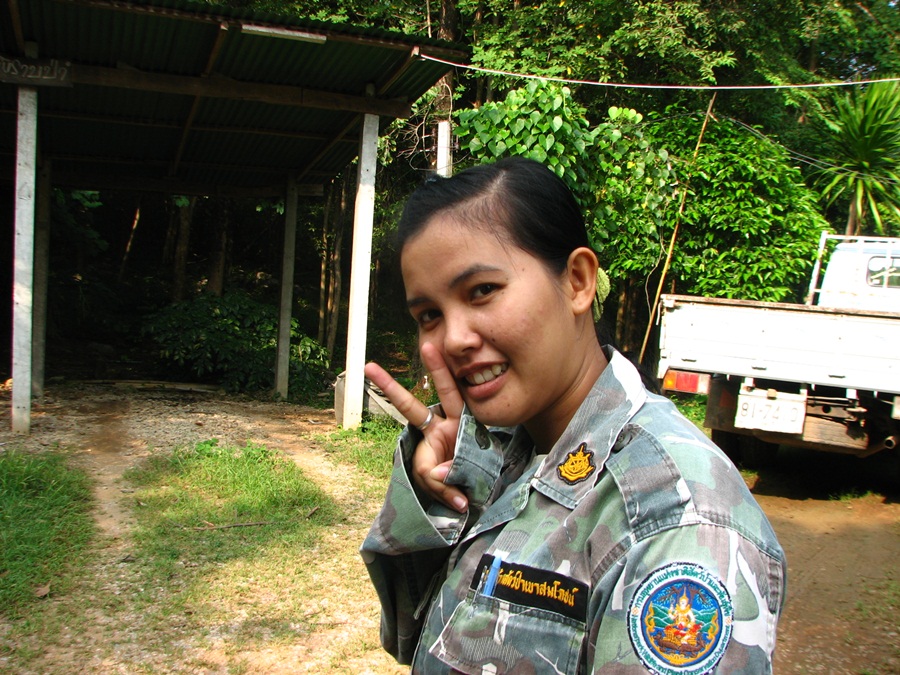 เจ้าหน้าที่สาวสวยคนนี้คือ น้องปุ๋ยครับ อาสามาเป็นเพื่อนน้องแหม่ม เดินไวยังกะลิงเลยครับ (เพราะในเป้มีแค่น้ำลิตรครึ่ง กะ เปลอีกหนึ่งผืน อย่างอื่นให้คนอื่นช่วยแบก)