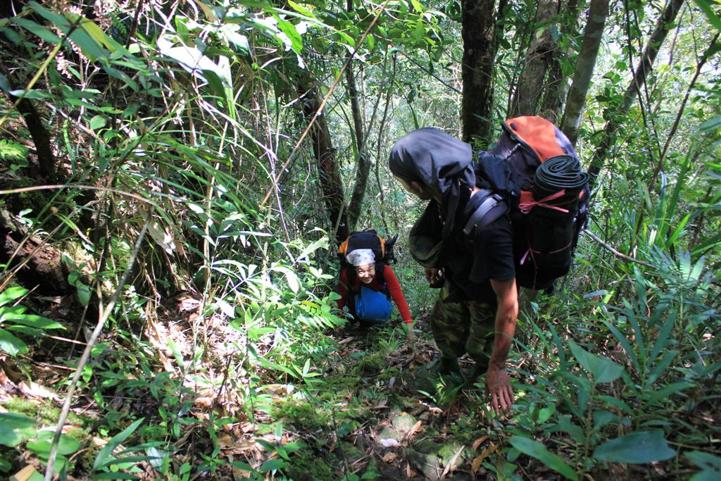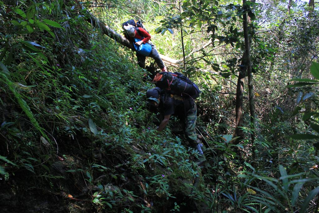 วันที่สองของการเดินทาง หลังกาแฟ เช้า ต่อด้วยข้าวเช้า แบบง่าย ๆที่เนตและน้องทัช กิ๊บ น้องแอน ช่วยกันปรุงแต่ง ให้เราได้กินกัน 9 โมงเช้าลงตัวเดินทางต่อ วันนี้เส้นทางจะเป็นปีน และป่าย คว้ากิ่งไม้และต้นไม้ขึ้นเป็นส่วนใหญ่