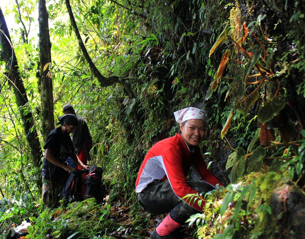 ที่ระดับนี้ ป่าเริ่มรกและมีเฟินร์พันธ์ต้นใหญ่ขึ้นบ้าง ความชื้นจากน้ำที่ซึมซับผ่านหินผา ต้นไม้ เถาวัลน์ เริ่ม ๆจะมีเสื้อใส่ คือปกคลุมด้วยพืชเล็กประเภทตะใคร่ และมอส น่าจะที่ระดับ หนึ่งพันเหลือแล้วหล่ะ