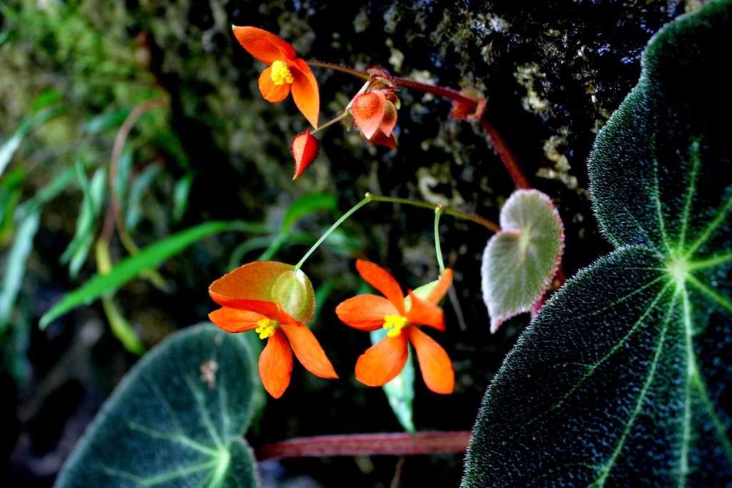 เหลือบมองย้อนไปเห็น ปิโกเนียออกดอกจากจุดที่พักกินข้าวในหุบผาหินแตกเลยปีนขึ้นไปถ่าย สวยมาก กอนี้ในตำแหน่งขึ้น และกลุ่มดอกที่บาน กำลังดี ปกติ ปิโกเนียจะมีหลายพันธ์ ดอกขาว ดอกชุมพูม่วงอ่อน ๆเหรือ แต่พันธ์ดอกส้มนี้หาค่อนข้างยาก แต่มีขึ้นมากที่เขาหลวงแห่งนี้ โดยเฉพาะบริเวณนี้ ส่วนพันธ์ดอกสีอื่น ๆไม่ได้เห็นดอกให้ถ่ายเลย พันธ์ไม่มีขนผิวไบเกลี้ยงก้านแดงก็มีขึ้นอยู่ แต่ไม่เห็นดอก พันธ์นี้สัตว์ชอบเล็มกินใบเห็นมากระหว่างทางที่ไบหายไป