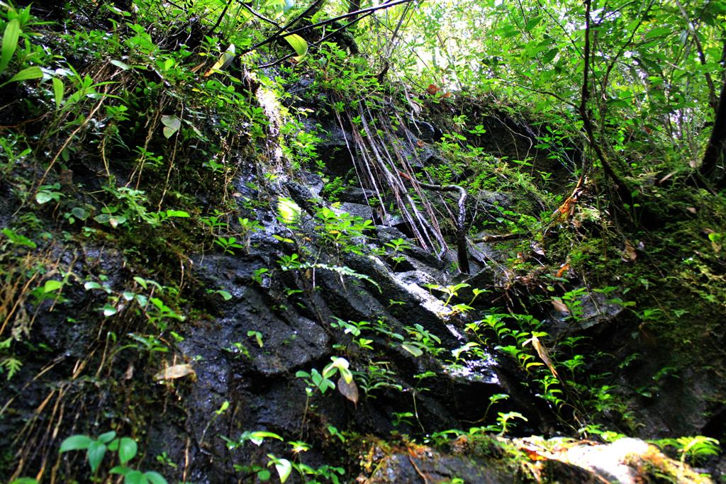 มองไปบนผาหินมีสายน้ำเล็ก ๆ ไหลซึมออกมาข้อดีของการเดินป่าเขาหลวงคือร่มครึ้ม ด้วยพันธ์ไม้ และอุดมณ์ด้วยความชื้นและสายน้ำ ชื้นแฉะด้วยเหงือ และ ความชื้นจากใบไม้ใบหญ้า ไต่คลานและล้มคลุก ดินรับรองสัตวํไม่เดินหนี มีกลิ่นหญ้า และดินในพื้นที่ คิดว่าพวกเดียวกัน คิดเล่น ๆ ฮ่า ๆๆ