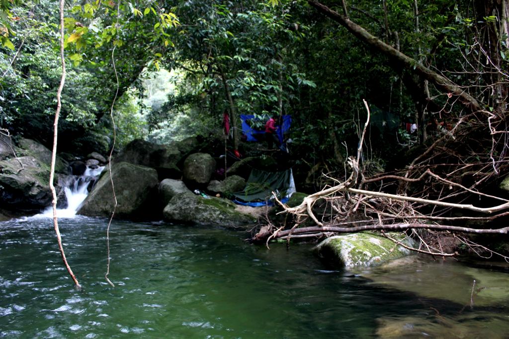 ที่พักสำหรับคืนนี้ครับผิดพลาดจากที่ตั้งเป้าใว้ เนื่องจากสมาชิกมีอาการ ปวดปลายเท้าและเดินได้ช้าลง จึงเคลียสถานที่ตรงนี้ตั้งแค้มป์กันริมน้ำ ซึ่งมีหินไสลด์ มาปิดทางน้ำ ทำให้เกิดวังน้ำลึก2 ม.ได้ว่ายเล่นมีเถาวัลน์ให้โหน ผมอาบสองรอบเลย เย็นและเช้า ทั้ง ๆที่น้ำเย็นเจี๊ยบแต่เพื่อเก็บความทรงจำไปนาน ๆน่ะครับ