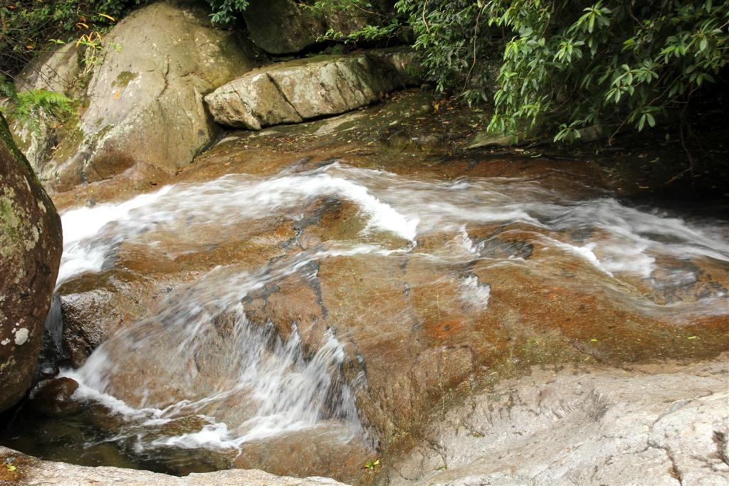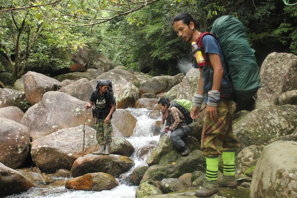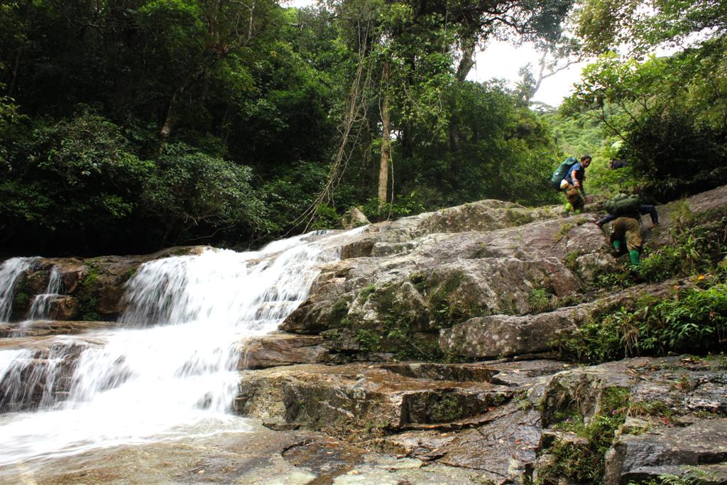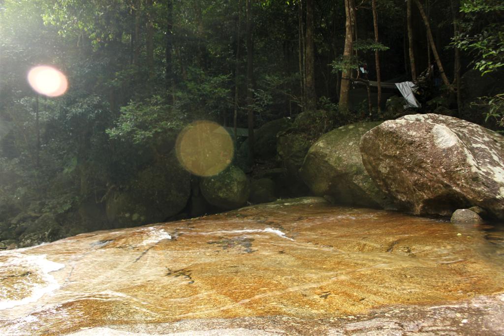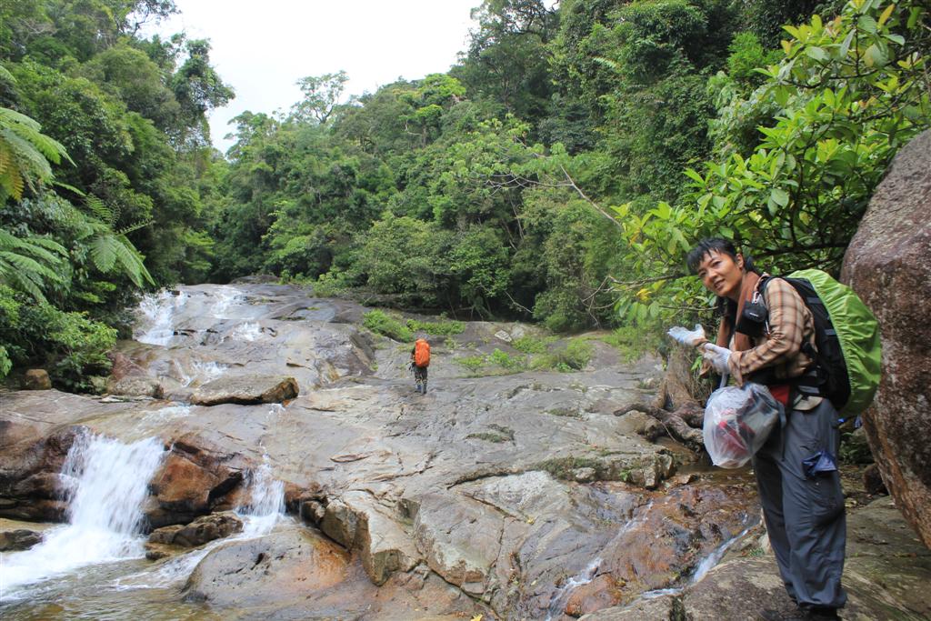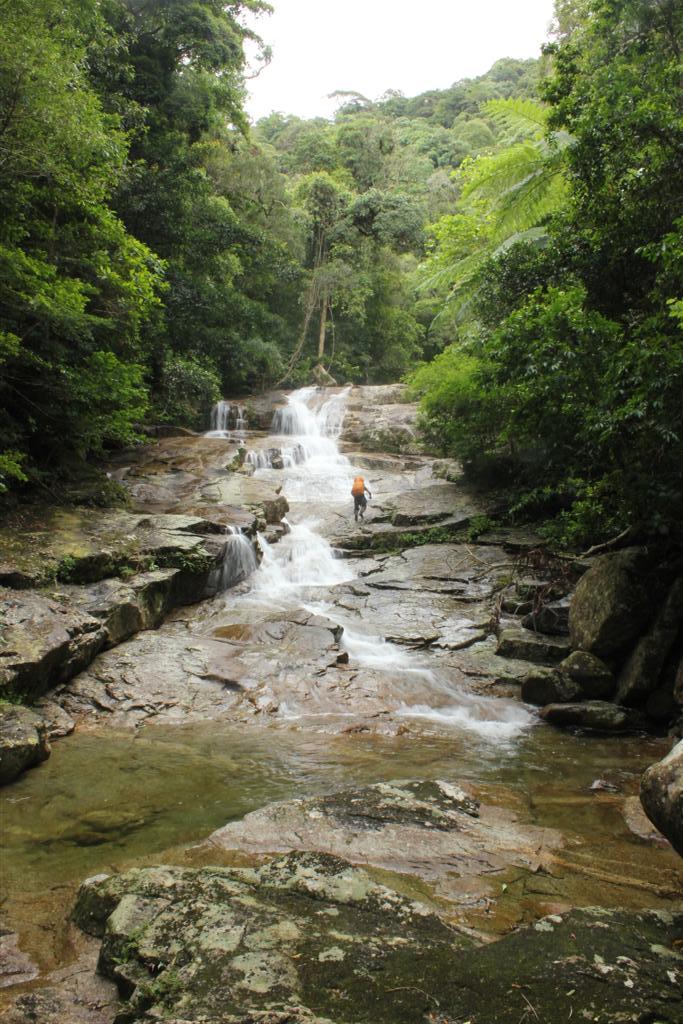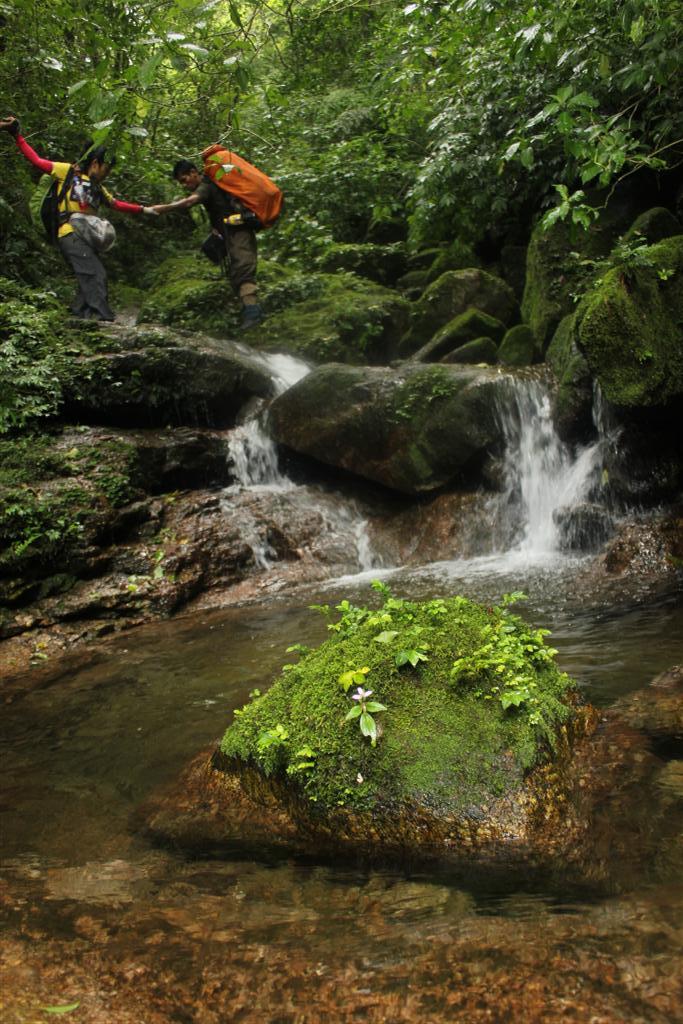การเดินบนสายน้ำตก โขดหิน ผาหินเป็นสิ่งที่มีตลอดทางในการเดินในวันแรก ซึ่งลื่นมาก ๆต้องระมัดระวังเป็นอย่างมาก