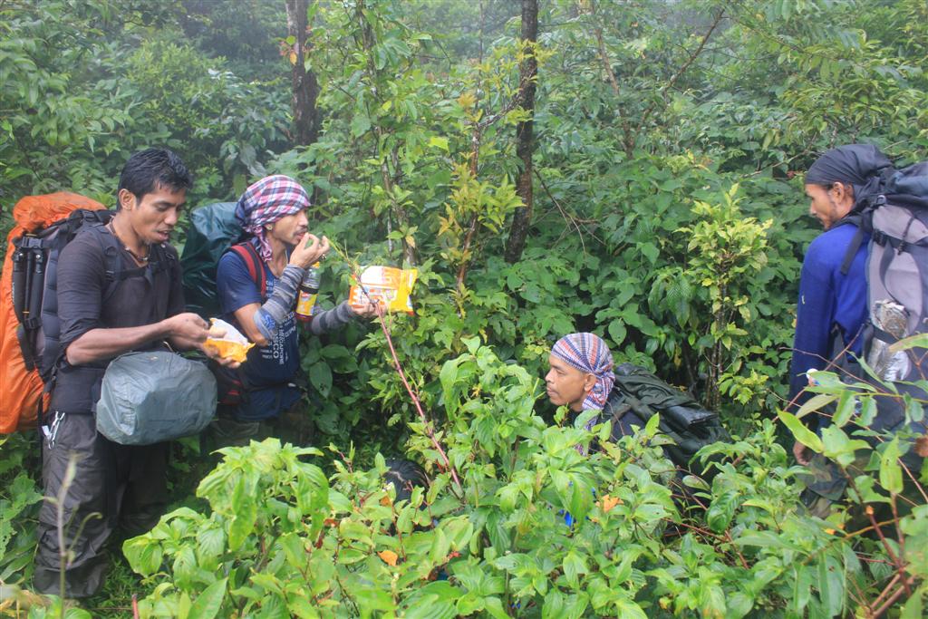 กาแฟร้อน ๆก่อนกินข้าวกันกลางไพร ฝนพรำและสายหมอก แก้หนาวได้ดีทีเดียวเลย