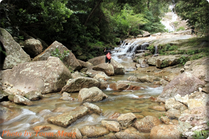 เดินไต่หินตามน้ำตก อย่าคิดว่าง่ายนะครับ หินมันลื่นมากๆ ตกน้ำป่อมแป๋ม