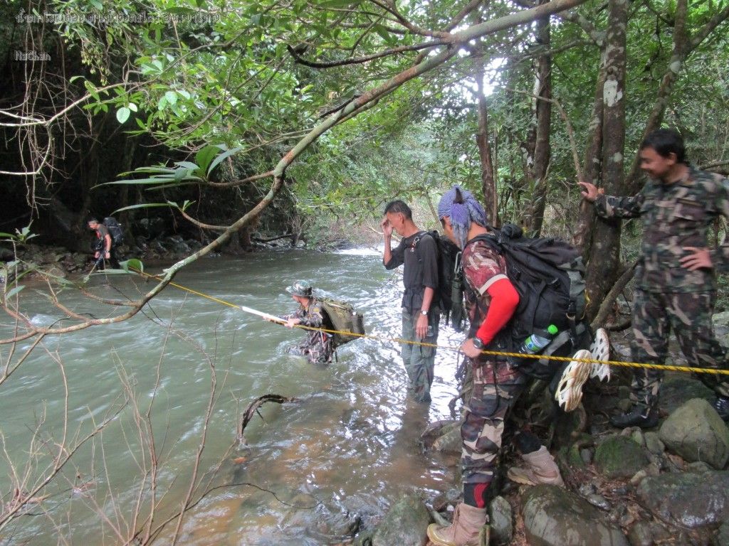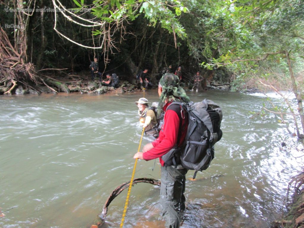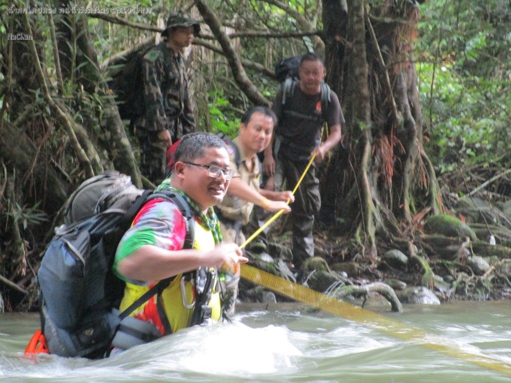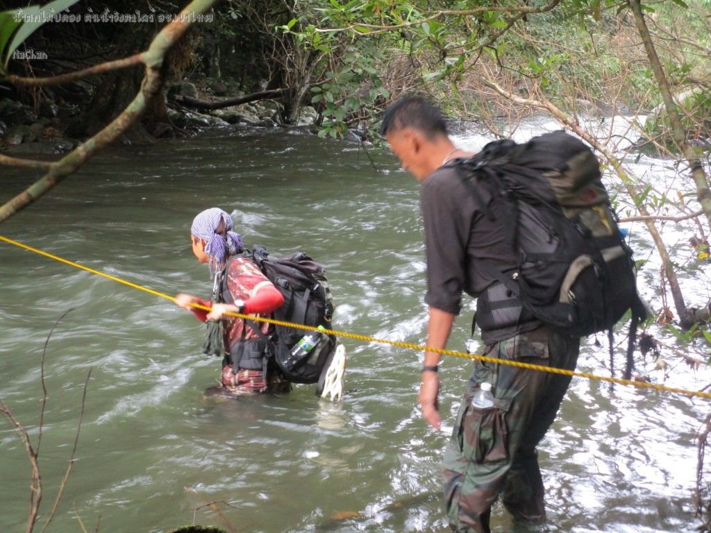 ตรงนี้น้ำแรงมากค่ะ ต้องใช้เชือกข้าม เนื่องจากเมื่อคืนฝนตก และ ระดับน้ำขึ้นสูง กว่าเดิมมาก เดินตัวเปล่าอาจปลิวได้