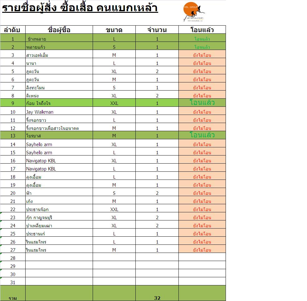 สรุปเพิ่มมา 1 ตัว ขนาด XXL นะครับ