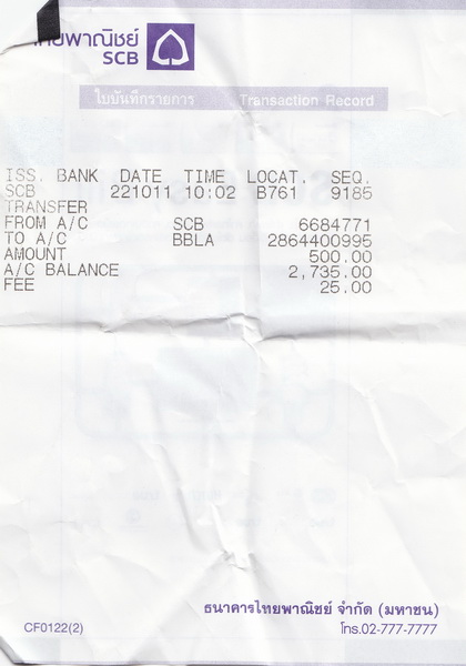 โอนเมื่อ 26 ต.ค 54 นะ จะ ..พ่อช้างพลาย ต้องถ่ายรูป ใบโอนแนบมั๊ย อิอิ เดี๋ยว ถ่ายก่อนนะ