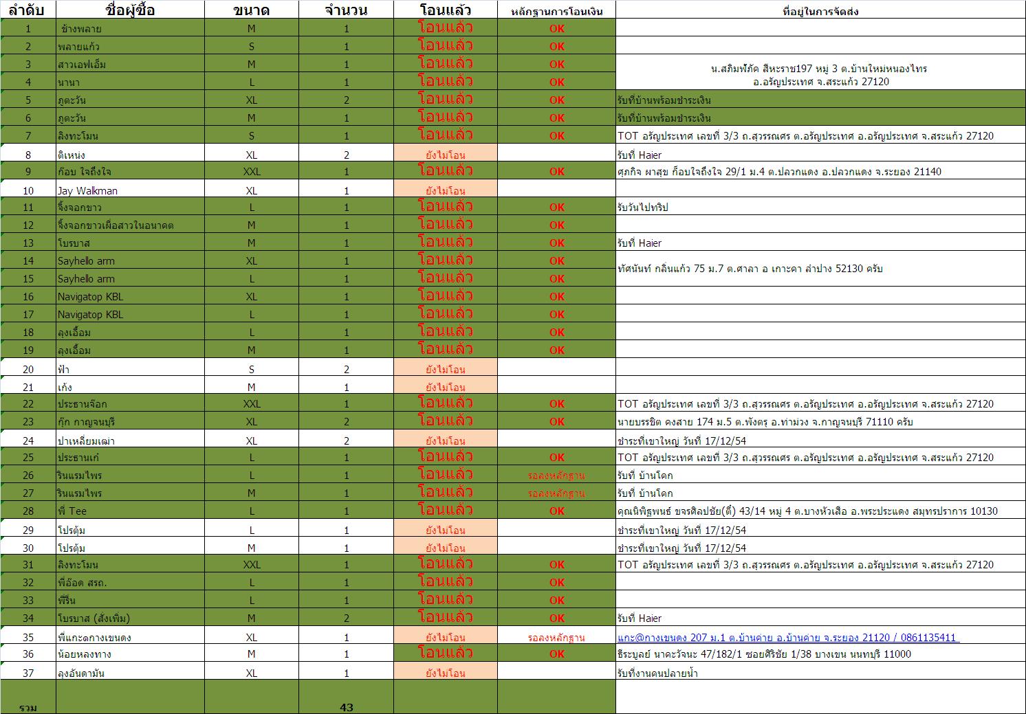 พี่ส่งเสื้อไปยัง นายบรรชิต คงสาย
