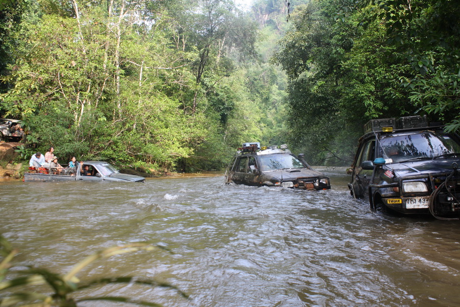ในรูปเป็นเส้นทางเข้าเกาะสะเดิ่งครับ กลุ่มเกียกำลังช่วยเพื่อนร่วมทางข้ามน้ำ
